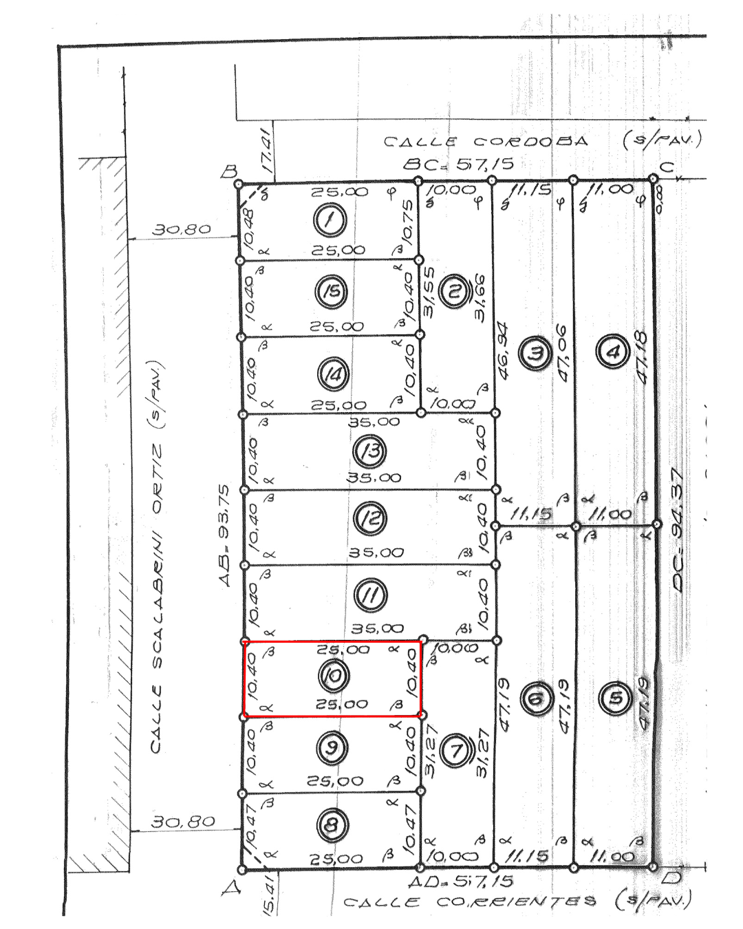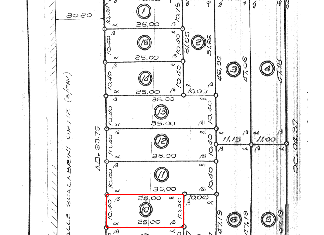 El Lote Nº 10 se encuentra ubicado en la calle Scalabrini Ortiz al 2100, sobre la Circunvalación de San Carlos Centro. El terreno cuenta con 10,40 metros de frente por 25 metros de fondo, ofreciendo una excelente superficie para múltiples usos.